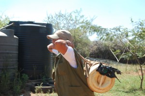 On the Sakuda manyatta, it is protected by a 20-foot tall wire fence intwined with branches from the prickly acacia tree. A 5,000-gallon polypropylene cistern sustains the family for all their water needs. One gate kept open during daytime hours is always secured at night. Inside the manyatta is a second fenced area called a Boo Oonkishu for livestock. Dogs are common fixtures in manyattas, becoming the alert system at nighttime against prowling wildlife. I remember waking from sleep one night… the dogs were furiously barking at something on the other side of the fence.